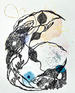"Magnolia" Gilcée Fine Art Print of Handcut paper laid over watercolor 9x12 by Mirina Moloney