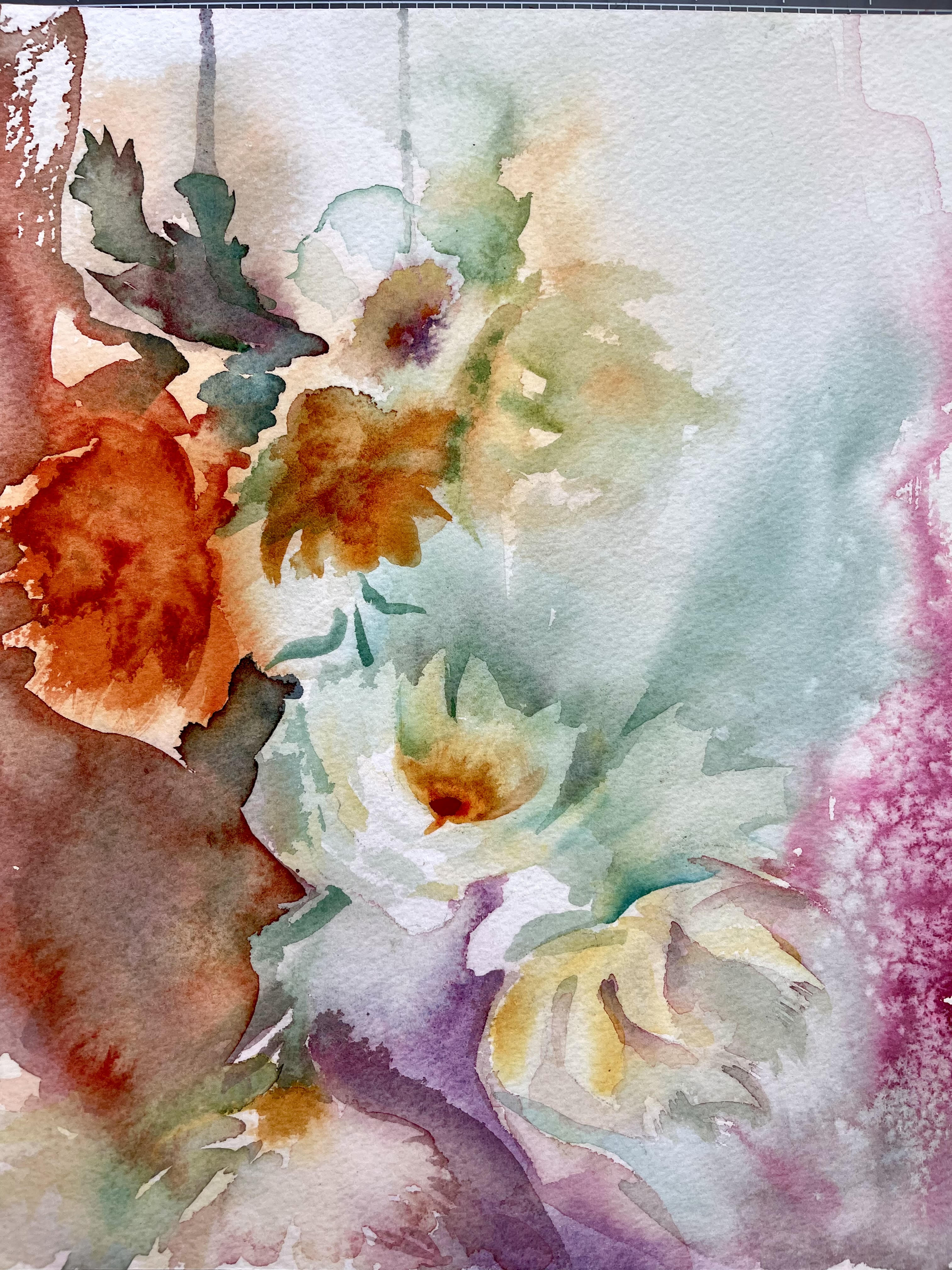 Shimmer floral paper-cut over watercolor