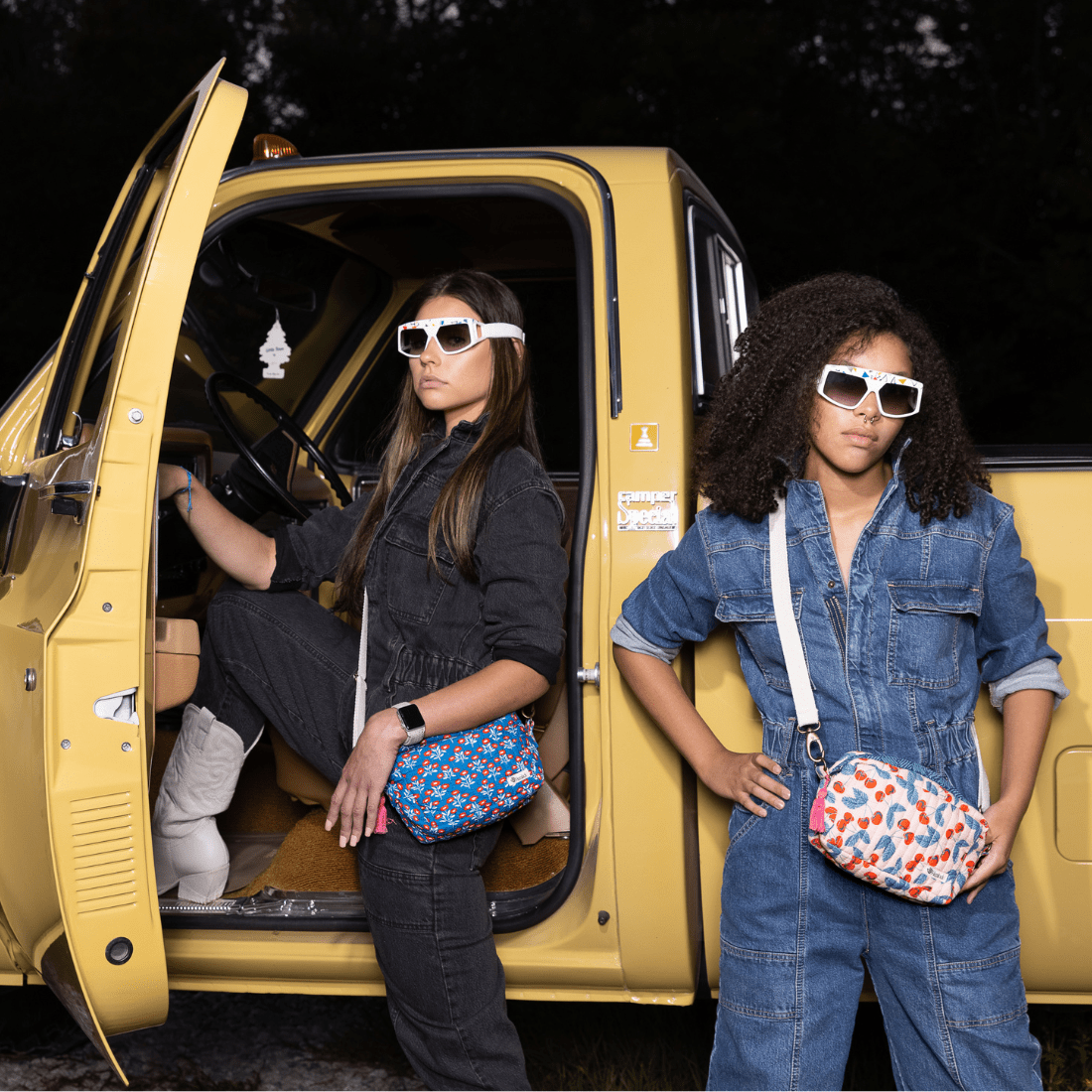 Grab your bag and head out on your next adventure! Our quilted cotton crossbody zipper bags are the perfect companion. You can wear them in 3 ways: like a fanny pack, across the shoulder or chest. There's an outer and inner pocket, a cotton strap with bronze hardware, and With details like a flirty tassle and custom dyed piping, these little darlings are a statement item for your journey. Color & Pattern: Royal blue with red and white flowers Material: 100% premium cotton; brass hardware. Sizing: 8.5 x 6.5 x 2.5" inches. Strap: Adjustable from 29" to 49". Designed in the U.S. Produced sustainably in India